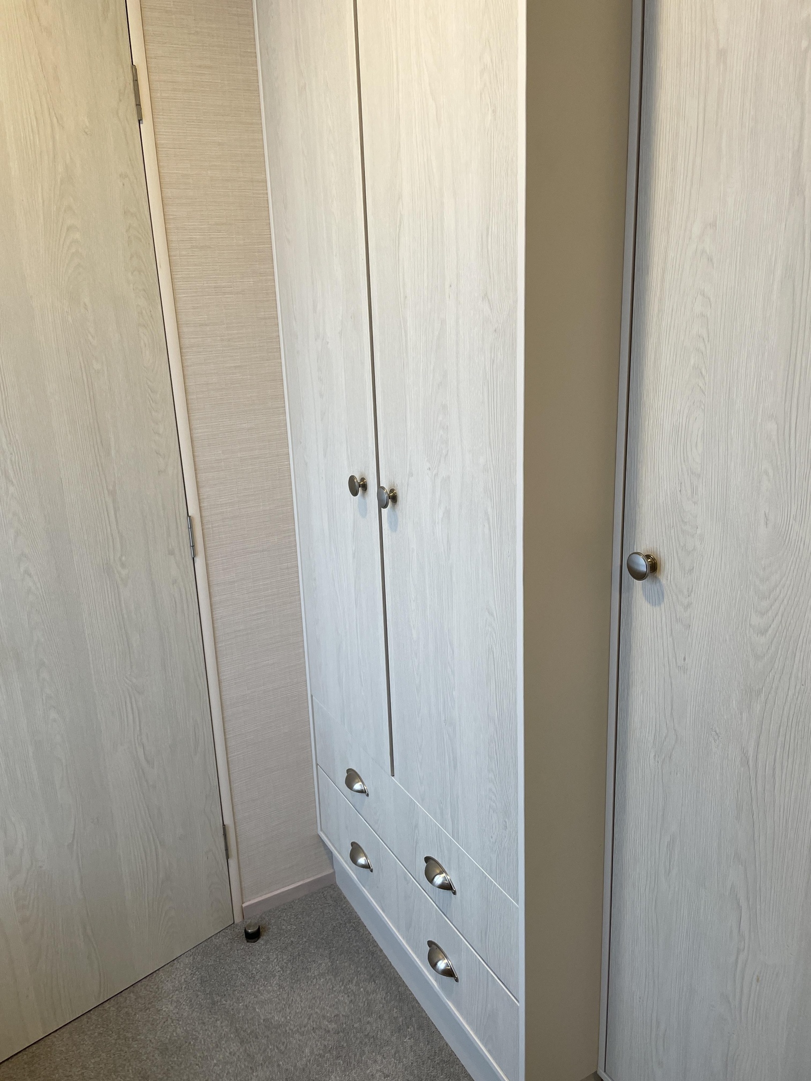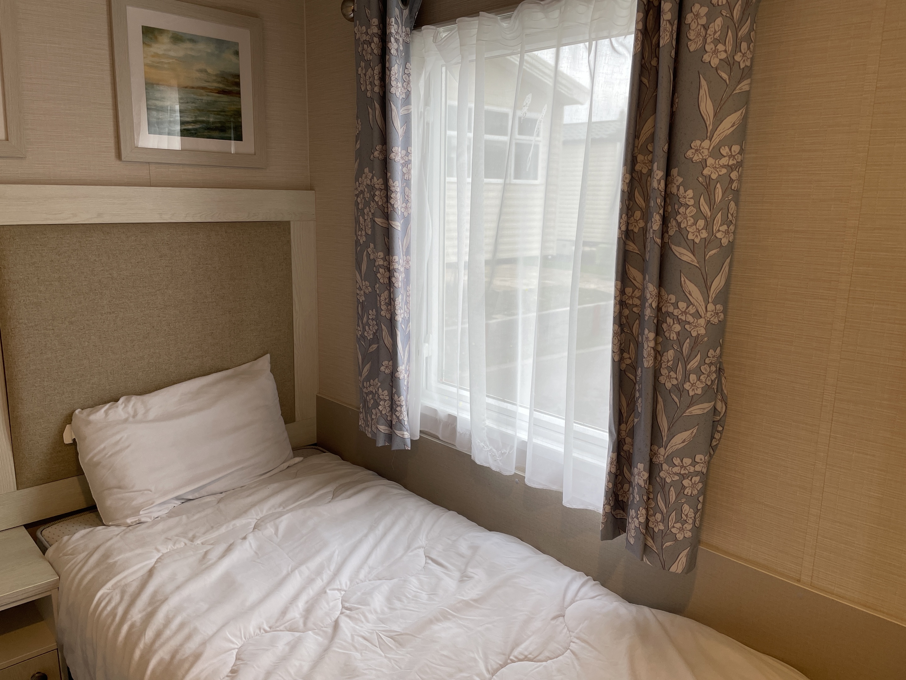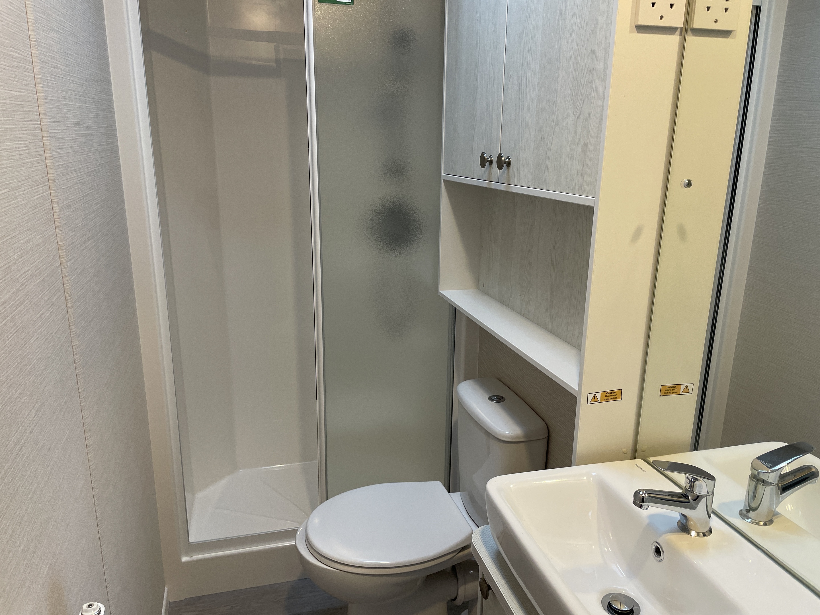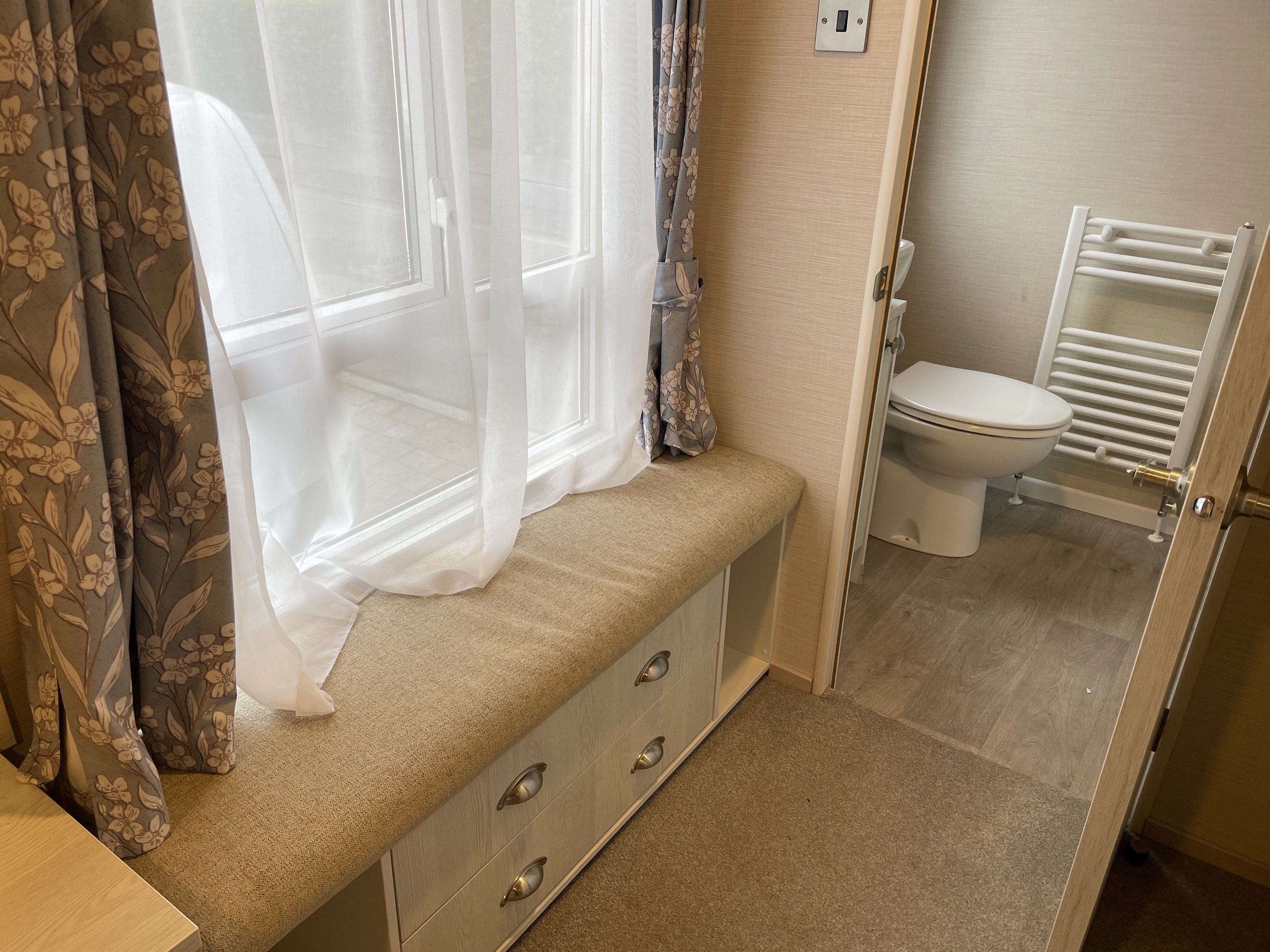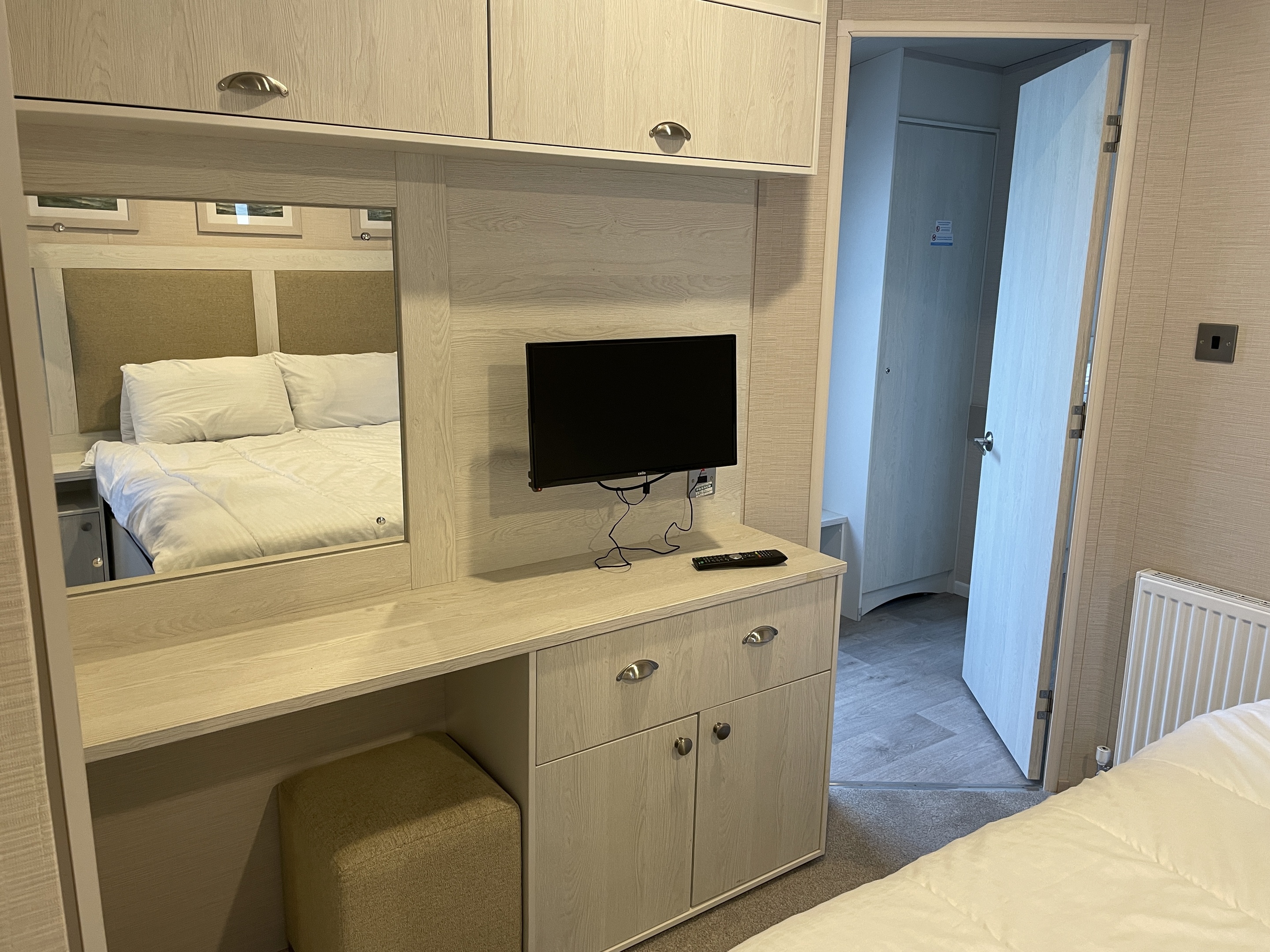 The kitchen has all the equipment you require for your holiday; cooker with grill, full-size dishwasher, washing machine, fridge/freezer, microwave, toaster, kettle and cupboards together with a full range of cutlery, crockery and kitchen utensils. The lounge/diner is modern and light with free-standing furniture. The perfect place to stretch out and look across the water. There is a flat-screen TV/DVD, a dining table and four chairs. The patio doors lead to the enclosed veranda with table and garden chairs.